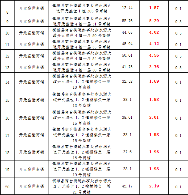 (一)拍租鎮(zhèn)雄發(fā)展集團(tuán)有限公司國有門面3年期使用權(quán),詳見下表: